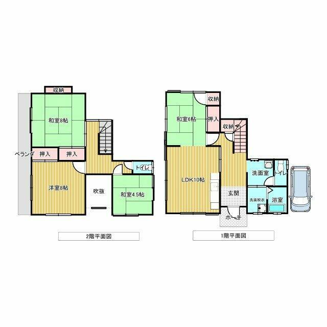 | 設備 | 全居室収納 床下収納 浄化槽 省エネ給湯器 上水道 プロパンガス 電気 エアコン 照明器具 トイレ2ヶ所 | ||